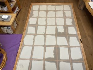 障子の張り替えをしました。開業して9年も経つと、穴があいたり・・・その穴を、薄めたボンドで埋めてしのいでいたのですが、流石に限界。障子紙を貼ることにしました。