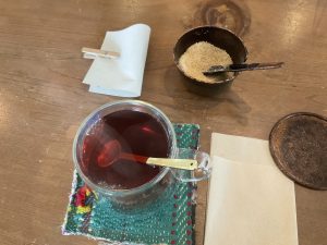 私は、1日1食なので、リンゴジュースをオーダーし、まだ時間があるので紅茶もオーダー。砂糖はてんさい糖、透明ガラスのコップは2重になっているので保温性アップ⤴️。コップの表面に触れると熱くないのに、紅茶が熱い!よく出来ています。