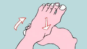 仰臥位になって足を肩幅に広げます。左右の足を内側にねじって、ねじりにくい足をそのままにして、反対の足のカカトを第4指と第5指の間に置きます。下の足が外側に回ろうとするのを、上の足が食い止めると、わずかな動きが徐々に上へと伝わって蝶形骨あたりにまで来ます。手は軽く骨盤に当てておくといいでしょう。気持ちいい感じがあればそれを味わうだけで正中線が整います。(つづく)